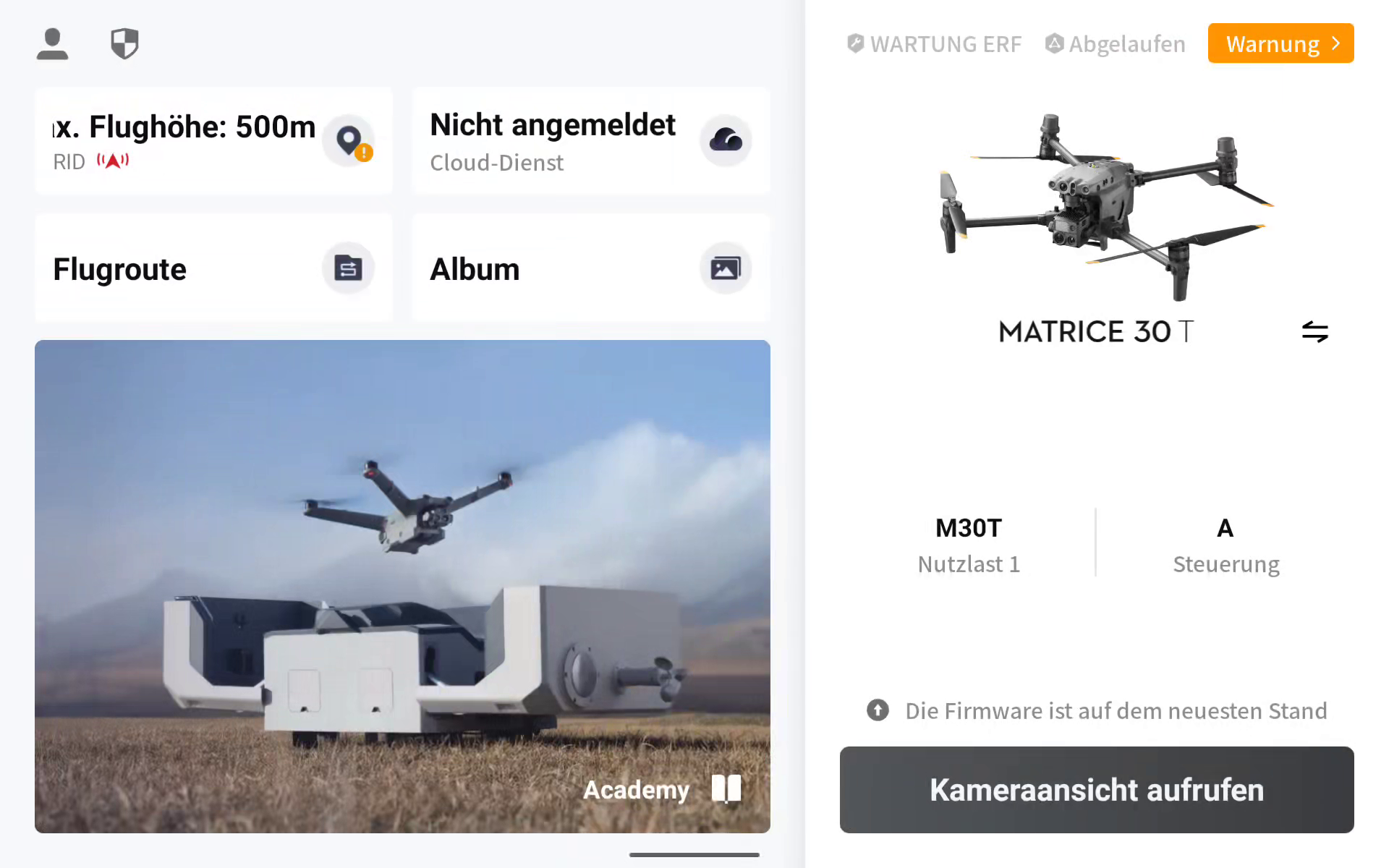 Starten Sie die DJI Pilot 2 App und navigieren Sie zum Cloud-Service Menü.